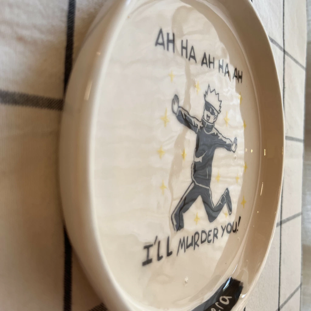 Plato cerámico con diseño de "I'll murder you" de Satoru Gojo de Jujutsu Kaisen. 100% Hecho a mano